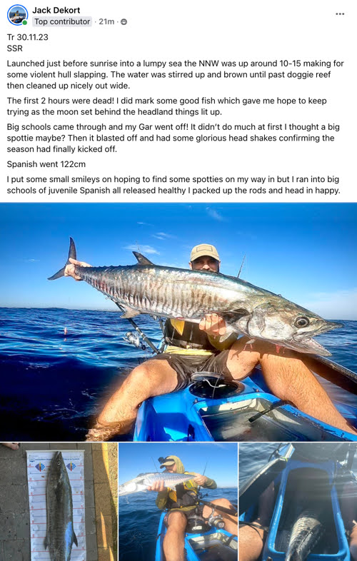 This monthly brief summary of fishing trip information within the Noosa Yakkers area is only a fraction of the useful and interesting info and banter appearing on our Facebook Group. Our public Page is here: Noosa Yakkers public Page (includes membership Sign Up link) and our Group, fully accessible only to Group members, here: Noosa Yakkers Facebook Group (includes request to join facility for all).